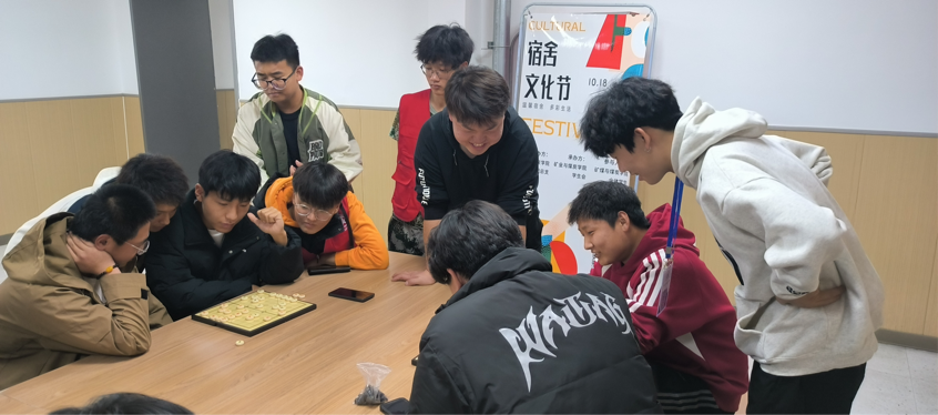 活动伊始,各个宿舍都积极参与,展现出了极高的热情。在活动中,每个宿舍派出代表,一时间科苑东区9#楼“师生成长空间”汇聚了各宿舍的棋坛高手,成为智慧交锋的舞台。象棋、五子棋多种棋类比赛同步开展,学生社区热闹非凡。