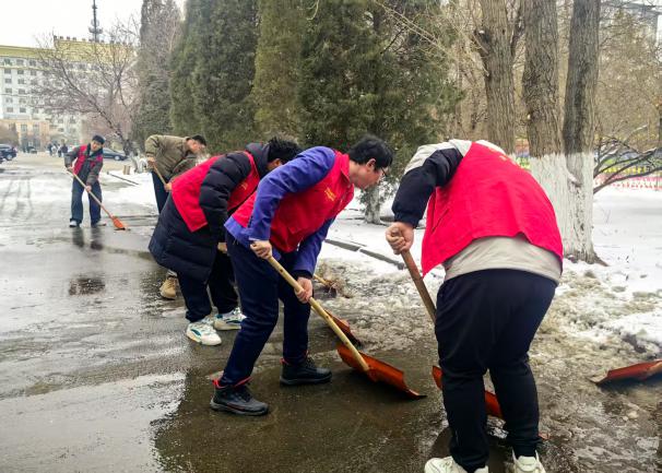 2025年3月4日,beat365中文唯一官网组织教师、学生党员、学生干部开展清扫冰雪志愿服务活动。