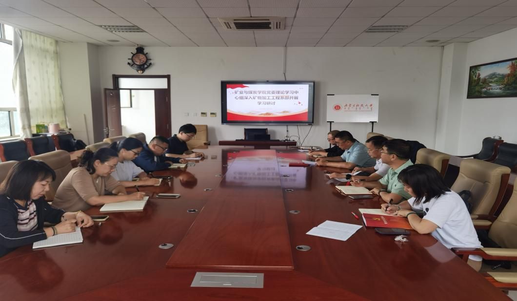 2025年7月7日beat365中文唯一官网党委理论学习中心组深入矿物加工工程系部开展理论学习研讨。学院党委书记段志峰主持会议,学院中心组成员、矿加系教师代表参加会议,学校党委委员、副校长李卫平出席并指导工作。