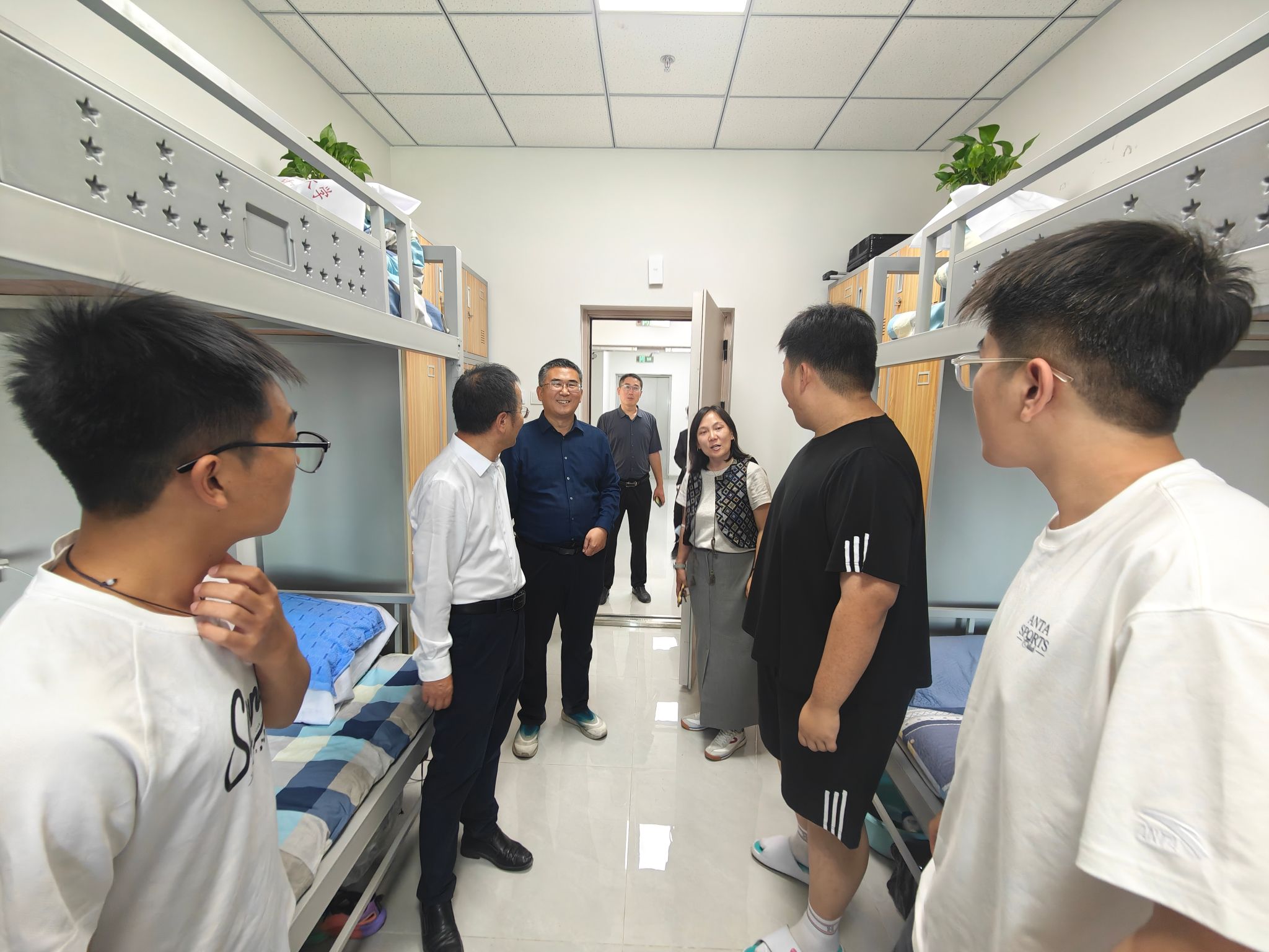 走访过程中,校领导及老师们与各宿舍学生展开深度交流,围绕学业发展、未来职业规划构建等核心议题,细致询问学生诉求。李校长尤为关注学生学习生活细节,主动询问大家是否适应新学期课程节奏、宿舍生活设施是否存在使用不便,确保学生合理诉求得到及时响应。针对学生提出的专业知识理解困惑、职业发展方向迷茫,李校长结合自身教育经验与行业发展趋势,耐心分析不同发展路径的优势与要求,为学生提供切实可行的参考建议。