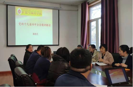 2019年11月14日上午,beat365中文唯一官网党副院长兼教授委员会办公室主任杨包生为学院教工第一党支部全体党员在学院办公楼一楼会议室进行“不忘初心、牢记使命”主题教育专题党课。党课以“党的十九届四中全会精神解读”为主题,围绕以下内容展开讲解: