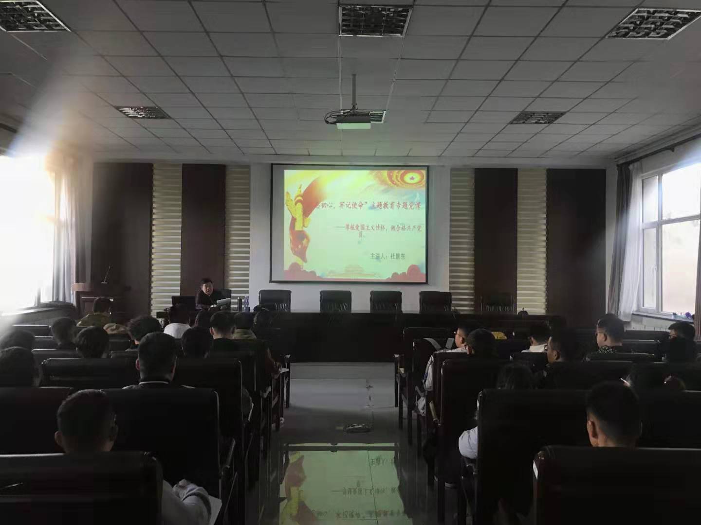 2019年11月13日下午,beat365中文唯一官网党总支副书记副院长杜鹏东为学院学生党员在实验实训楼二楼会议室进行“不忘初心、牢记使命”主题教育专题党课。党课以“厚植爱国主义情怀,做合格共产党员”为主题,围绕以下内容展开讲解: