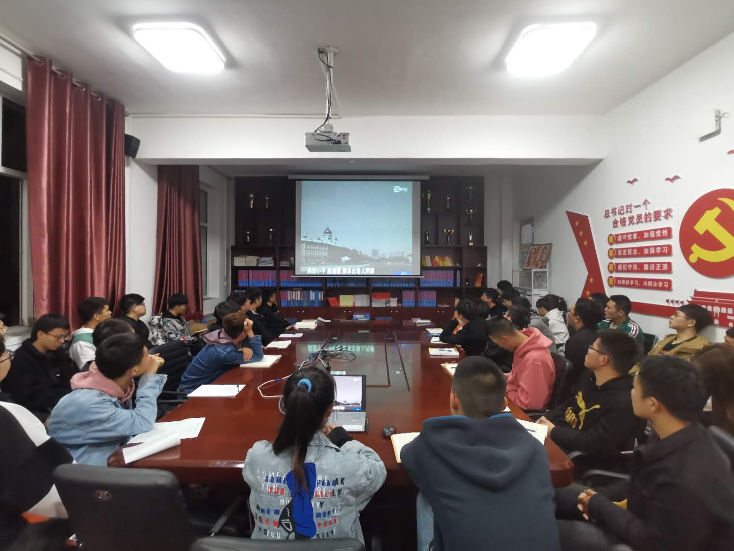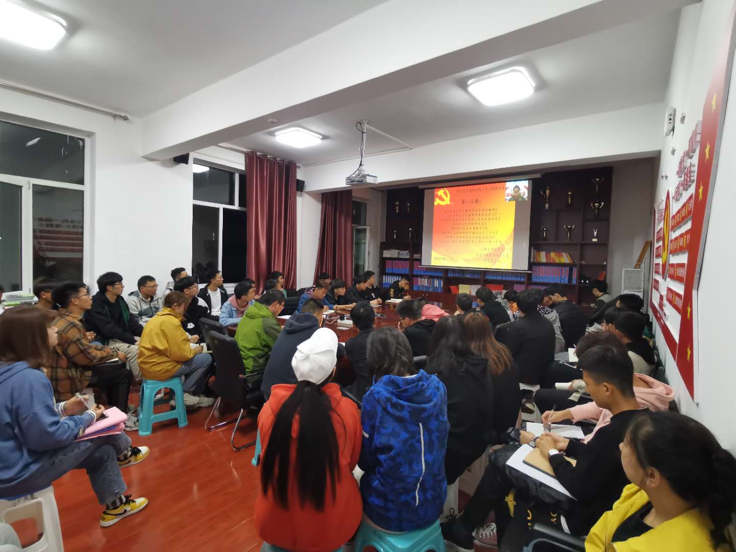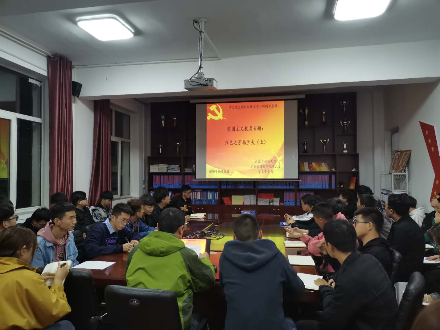 为进一步提高学生爱国主义观念和思想觉悟,矿业与煤炭学院党总支于2020年10月15日晚上19:30,在临曦楼二楼党员之家线上线下同步开展专题理论学习活动。本次学习内容是第一议题:《习近平总书记关于民族工作的重要论述》、《习近平谈治国理政》第三卷《习近平总书记教师节重要寄语精神》、《习近平总书记教育重要论述讲义》;专题理论:《中华人民共和国宪法》《中华人民共和国教育法》、《中华人民共和国国家通用语言文字法》、《中华人民共和国民族区域自治法》;爱国主义教育专题:观看《红色之子乌兰夫(上)》