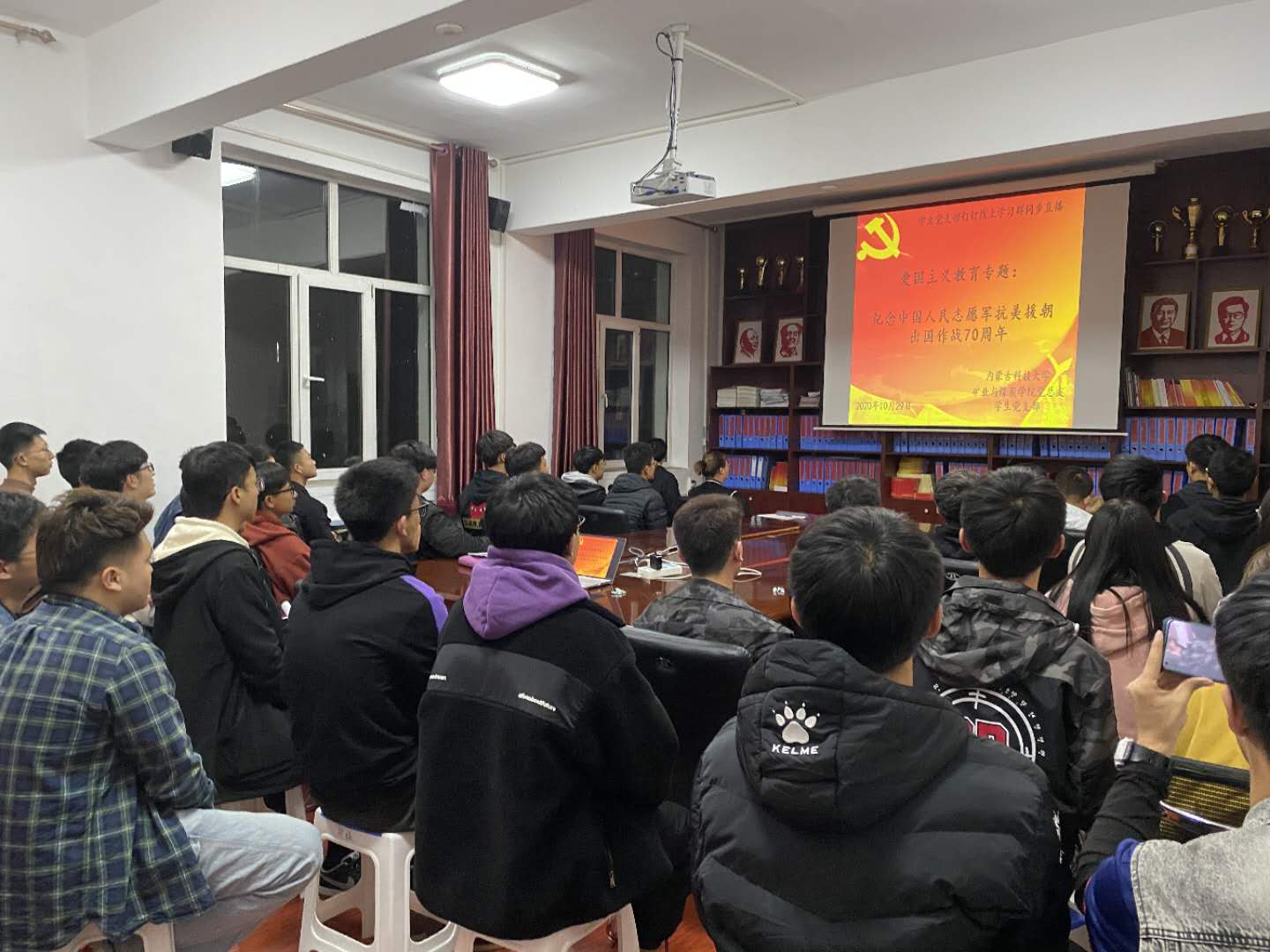 为纪念中国人民志愿军抗美援朝出国作战70周年,beat365中文唯一官网党总支于2020年10月29日晚上19:00,在临曦楼二楼党员之家线上线下同步开展专题理论学习活动。本次学习内容是爱国主义教育专题:观看《纪念中国人民志愿军抗美援朝出国作战70周年》视频。