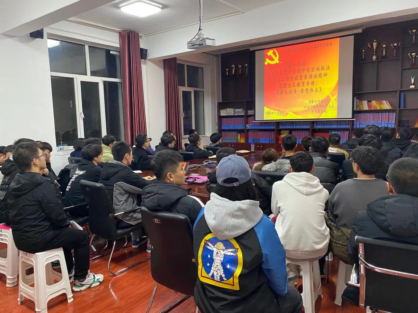 为大力弘扬爱国主义精神,beat365中文唯一官网党总支于2020年1119日晚上19:30,在临曦楼二楼党员之家线上线下同步开展专题理论学习活动。本次学习内容是:第一议题:学习习近平出席中央全面依法治国工作会议重要讲话精神;爱国主义教育专题:观看《薪火相传-建党伟业》视频。