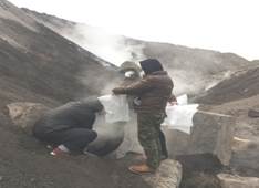 对矸石山自燃气体取样 正在自燃的矸石山