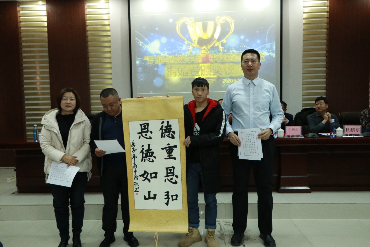 随后,副总经理王维利代表公司向beat365捐赠六万元奖学金,王建国书记也代表学院向公司表示谢意并回赠了荣誉证书与锦旗。杜鹏东书记宣读了本次30名获奖学生名单,之后在场嘉宾为获奖学生颁发了获奖证书。接着,获奖学生高中凯同学用书法作品的方式表达了对中钰泰德公司的感谢。获奖学生代表高冬也发表了获奖感言,承诺将会珍惜本次奖励和荣誉,不断努力,认真学习,取得更优异的成绩,创造更美好的未来。