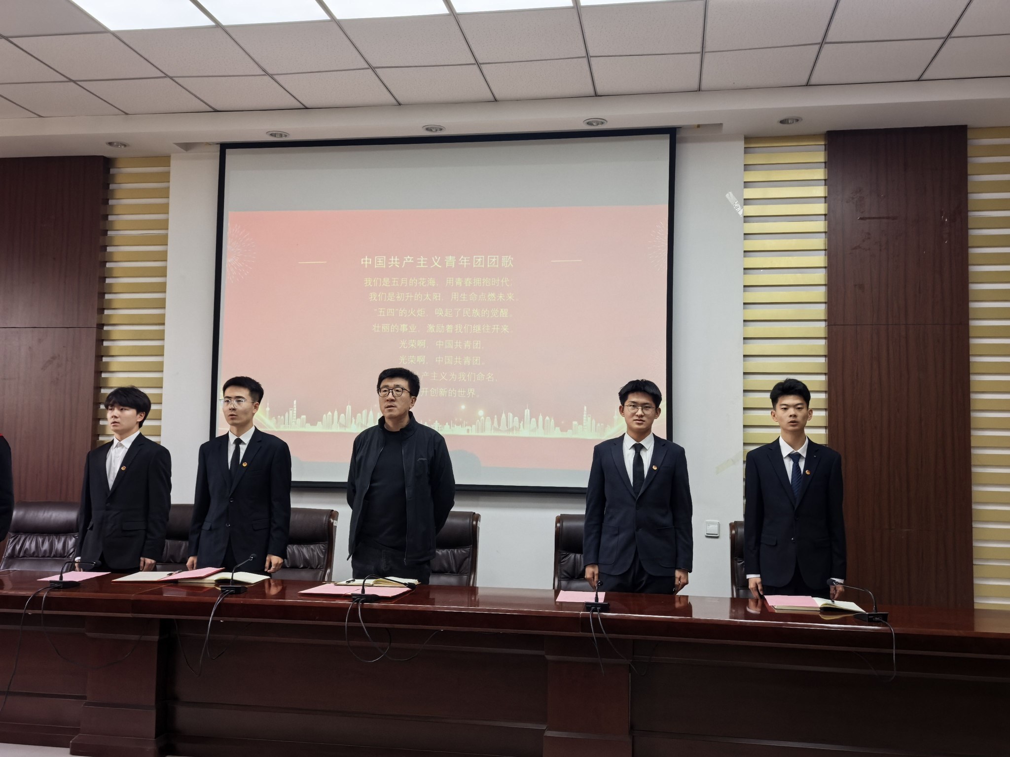 仪式尾声,李林儒带领全体学员重温入团誓词,庄严的誓词让团员的身份认同感与责任感再次凝聚。最后,郭灵飞做总结,并对学员提四点要求,要求大家端正学习态度,重视团课、协调好学习关系;把握重点内容,积极参与多环节学习、分享交流;坚持理论联系实际,结合各类实际思考提升、锤炼党性;加强组织纪律性,主动学习、严守纪律、完成任务。