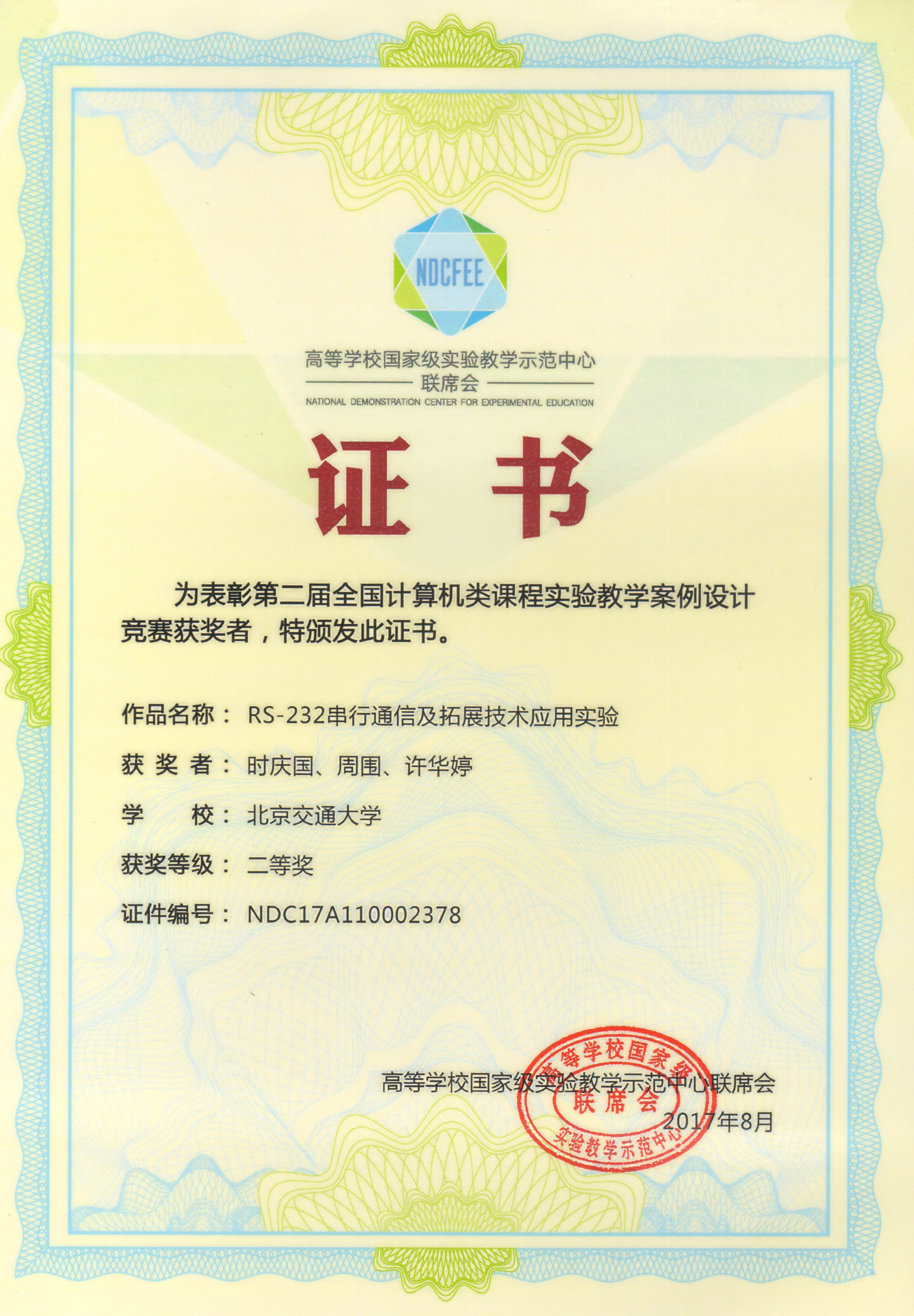 2017年11月11-12日,第十届全国高校计算机实践教学论坛暨第一届中国计算机实践教育学术会议在南京召开,有来自200余所高校的300余位教师参加。在本次学术会议上,九游体育计算机基础教学基地时庆国、周围、许华婷老师开发的实验教学案例《RS-232串行通信及拓展技术应用实验》被评为二等奖。