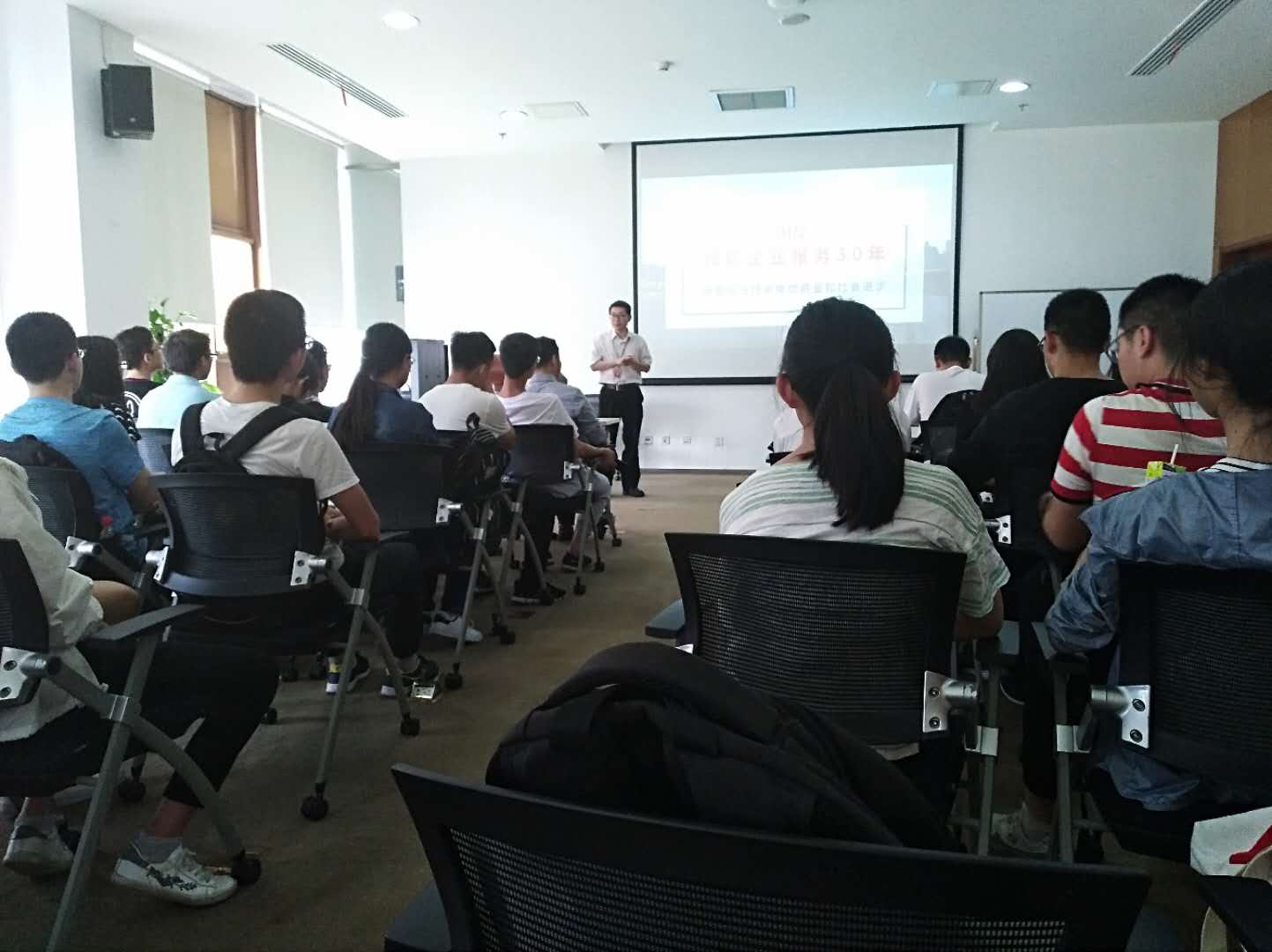 用友集团接待老师首先向同学们介绍了用友集团概况,其中包括集团的产品技术、合作伙伴、近几十年的发展历程、企业互联网方面的服务以及在软件、云服务、金融服务三方面的成员企业等。带领同学们参观产业园区,为同学们简单介绍了公司的办公楼、宿舍、食堂、会议室等建筑。