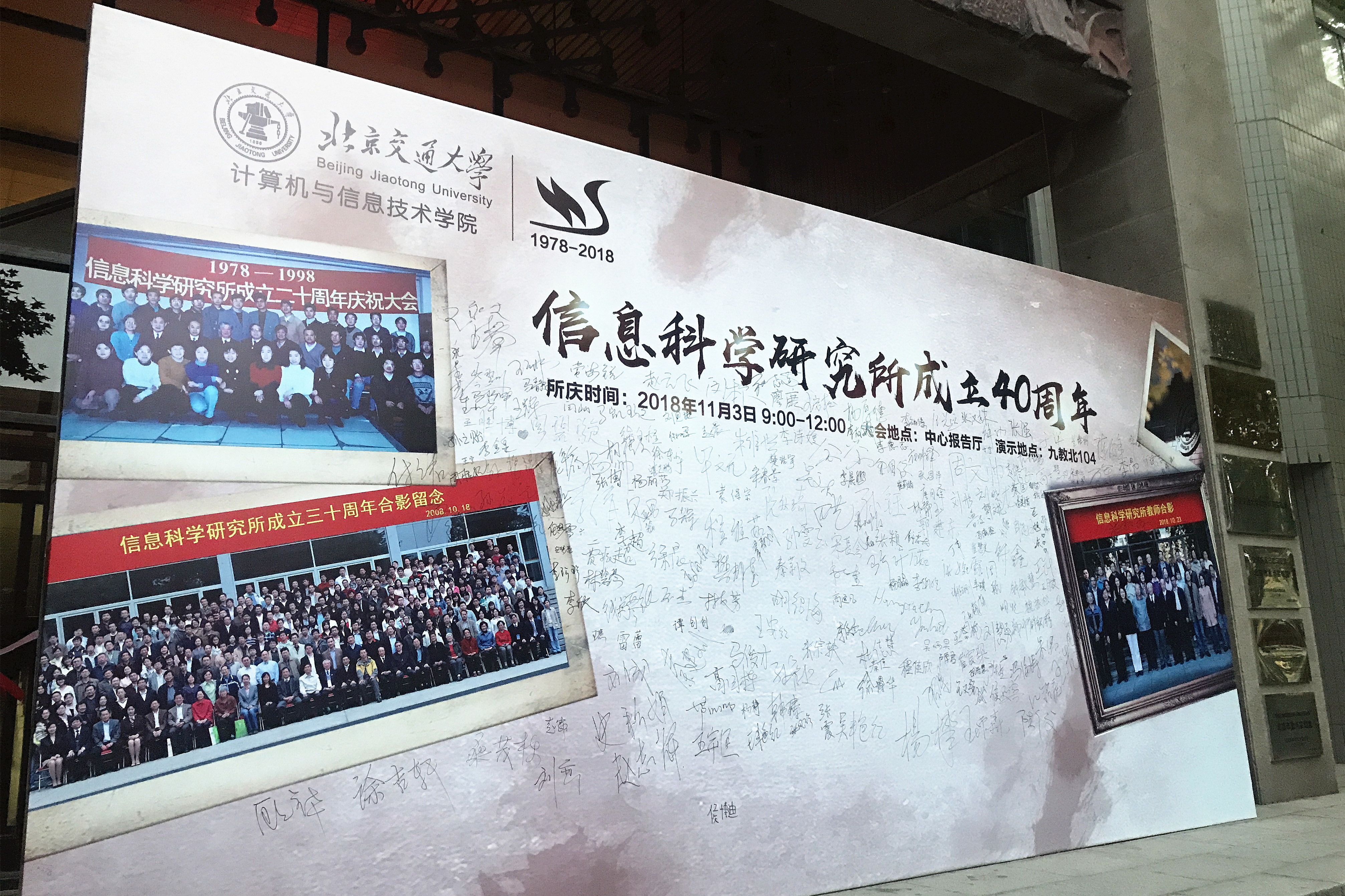 2018年11月3日,九游体育计算机与信息技术学院信息科学研究所迎来四十华诞,邀请了九游体育余祖俊副校长、科技处荆涛处长、研究生院李国岫常务副院长、电子信息工程学院唐涛院长、计算机与信息技术学院蔡伯根院长、杨晓晖书记等领导和中央军委联合参谋部第55所樊邦奎院士、美国犹他州立大学承恒达教授及毕业校友、在校师生等三百余人,在中心报告厅共同参加这一庆典活动。