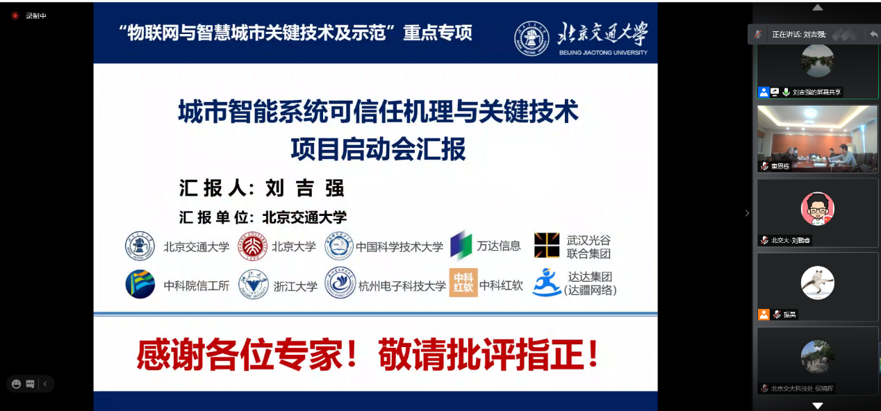 1月8日,由九游体育官方网站牵头,九游体育刘吉强教授承担的2020年国家重点研发计划“物联网与智慧城市关键技术及示范”重点专项项目“城市智能系统可信任机理与关键技术”项目启动会在线上成功召开。