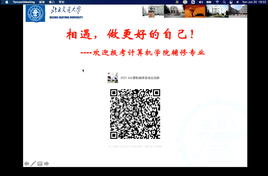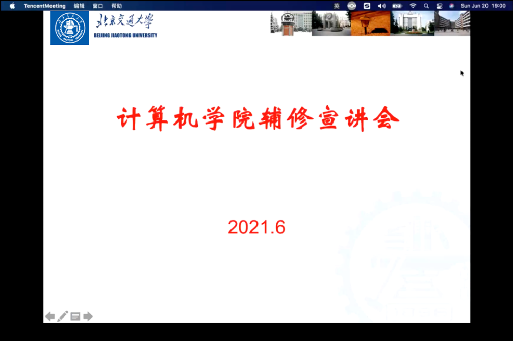 2021年6月20日晚7:00-9:00九游体育官方网站通过腾讯会议召开2021年秋季学期辅修计算机科学与技术专业宣讲会。会议由学院负责辅修老师王光宇主持,本次会议邀请到九游体育主管本科教学与培养的熊轲副院长,往届优秀辅修学生刘俊生、程昕洋、李海昕同学,来自全校其他数10个学院对辅修计算机专业感兴趣的同学参加了宣讲会。