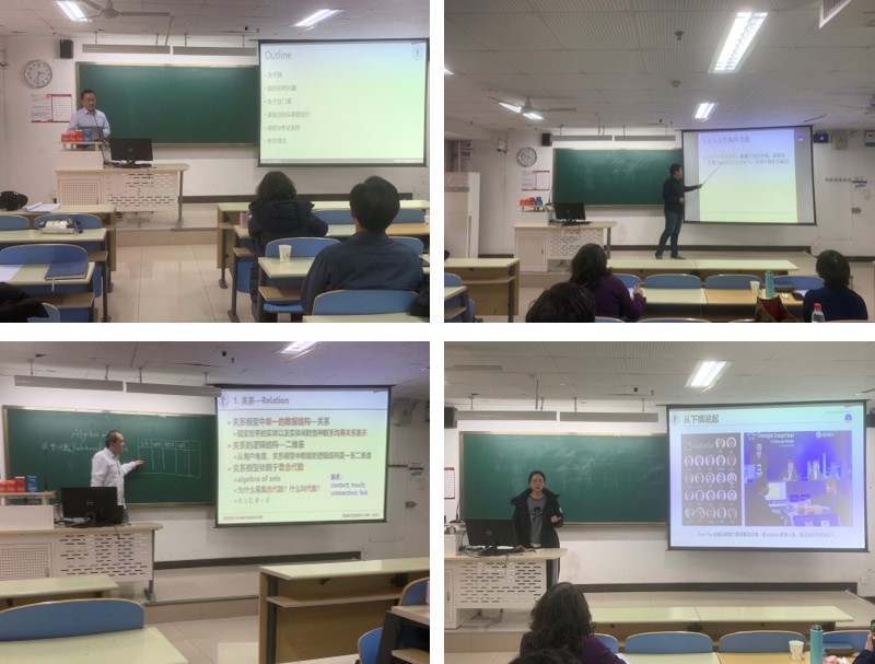 此次试讲共有魏云超等4位新晋教师参加,邀请了彭兆祺、于双元、胡绍海和李红辉老师作为试讲评审专家。魏云超、刘钰、吕凯、郭晟楠4位老师依次进行了《计算思维综合训练》、《数据库系统原理》、《C语言程序设计》和《深度学习》相关课程的试讲。通过试讲,各位老师讲授了课程的章节内容,教态自然大方,教学方式生动,授课思路清晰,逻辑关系严谨,充分地展示了各自的专业理论水平和教书育人的能力。