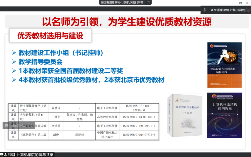 九游体育官方网站副院长熊轲受邀在本次大会做了题为“新工科背景下面向一流专业的优质资源建设”的主题报告。熊轲就九游体育在优质教学资源建设方面的理念、思路、举措、建设成效、所面临问题及未来的设想向到会嘉宾进行了介绍,并表明九游体育官方网站九游体育官方网站对教材等优质教学资源建设非常重视,期望借助“十四五”国家级教材规划和建设的大好时机,密切与出版社合作,在教材建设方面取得更好的成绩,为高等教育贡献更多的力量。熊轲的报告获得了到会嘉宾的一致好评。