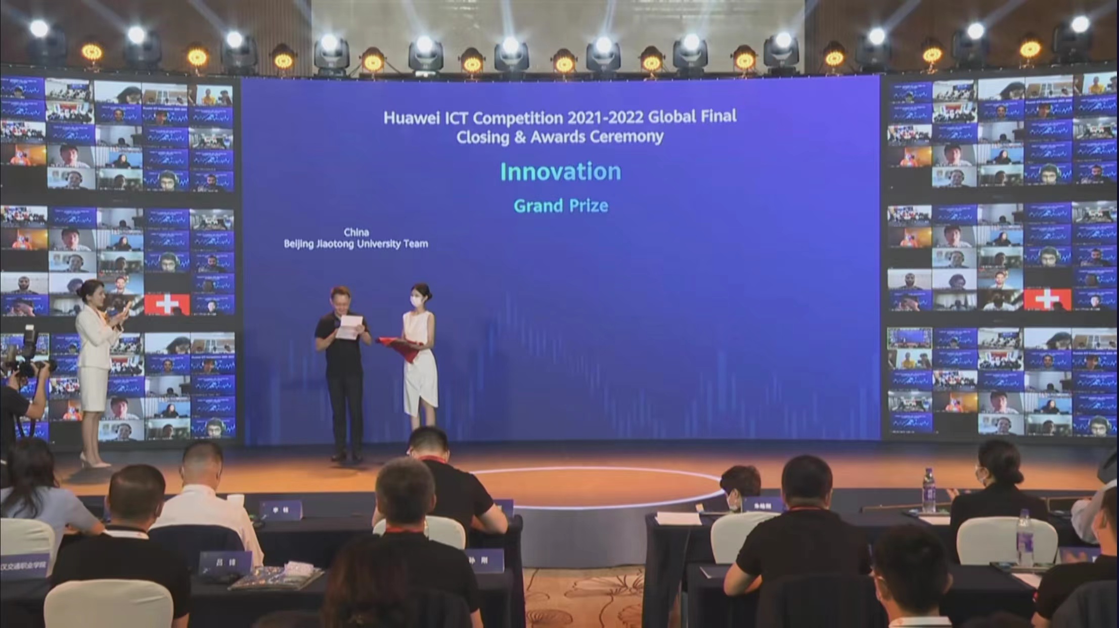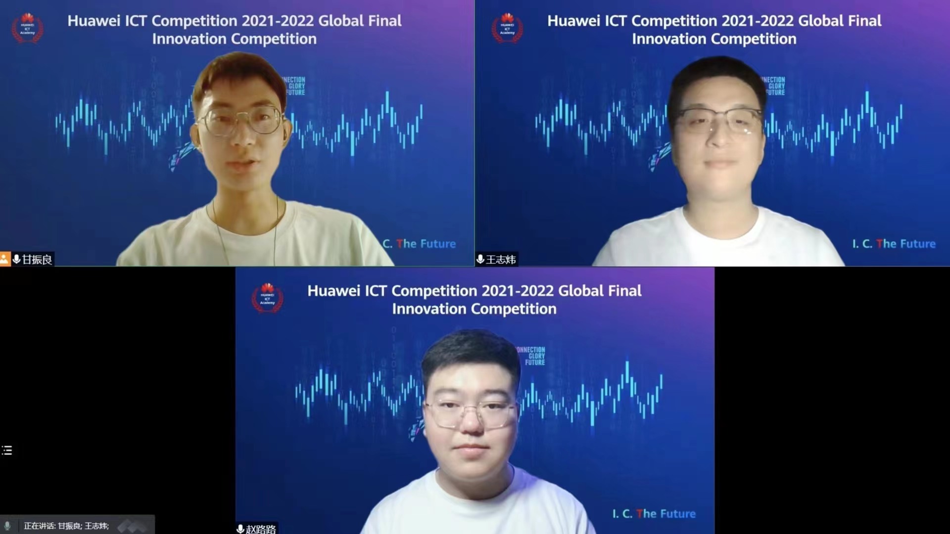 2022年6月17日至20日,华为ICT大赛2021—2022全球总决赛成功举办,并于6月25日在深圳采用线上线下混合方式举办了闭幕式暨颁奖典礼。九游体育卢思洋老师指导的队伍(2019级本科生:赵路路、甘振良, 21级研究生王志炜)获华为ICT大赛2021-2022全球总决赛创新赛特等奖,在此之前已获得了华为中国大学生ICT大赛2021·创新赛全国一等奖的优异成绩。