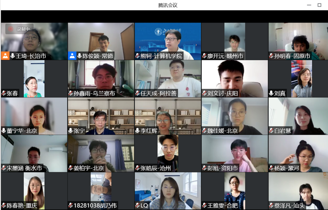 最后,熊轲副院长总结发言,感谢同学们对铁信在实习、实践、科研、考核等方面的建议,学院将会结合实际,用心优化铁信培养方案。希望同学们保持对铁路热爱,全身心投入,运用母校学习的方法,保持持续进步的思维,实现母校铁路行业信息化建设的使命!同时也相信,同学们疫情期间的共同学习生活经历,未来同样会成为青春里最美好的回忆。最后,期待同学们今后有机会多回来看看,北交大永远是你们的家!