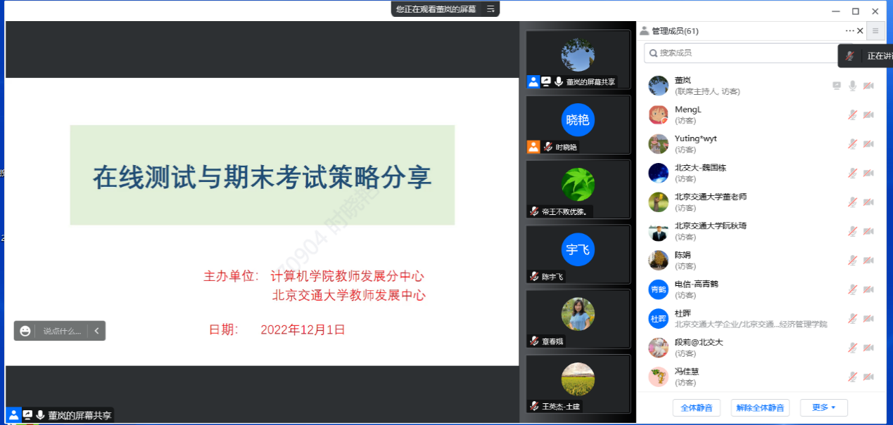 经过本次会议的学习和交流,老师们对于如何使用课程平台和雨课堂实施线上考试,如何分考场进行监考,如何更好地防止作弊行为有了更多的思路和解决办法,对保障九游体育期末线上考试质量起到了非常重要的作用。