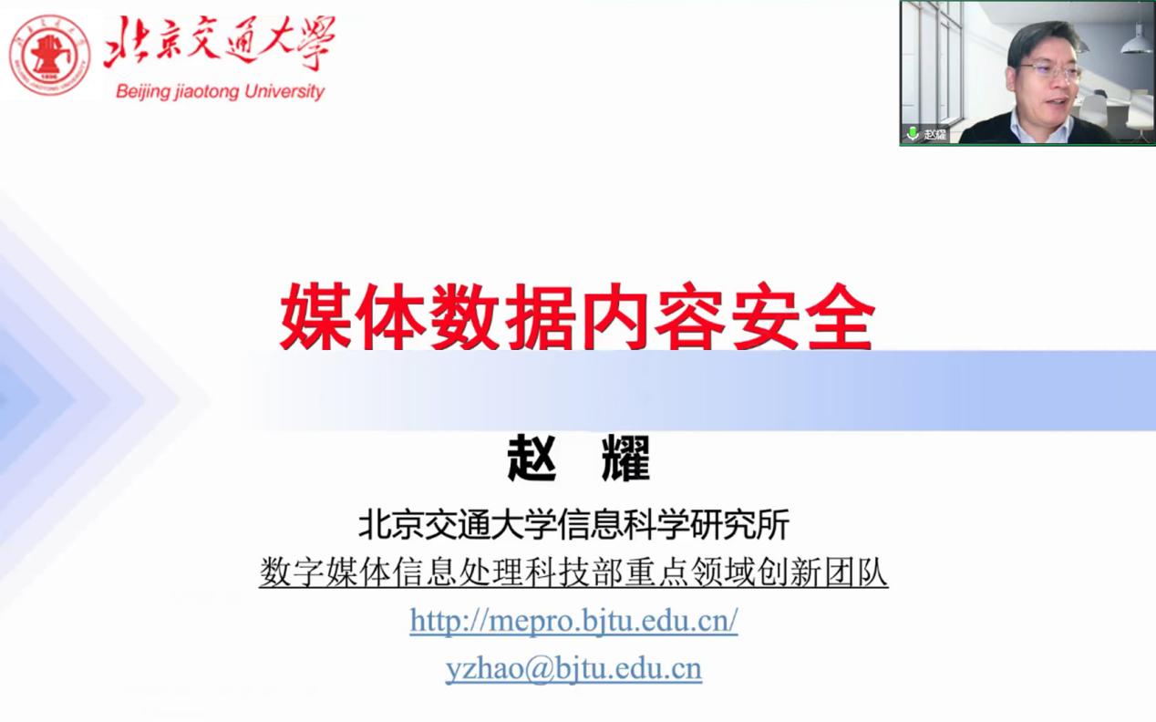 九游体育官方网站赵耀教授的报告题目是《媒体数据内容安全》。报告首先介绍了媒体数据内容安全的目的和意义,并提出领域重要研究问题:保护知识产权和鉴别数字媒体信息的真实性和完整性。其次,该报告讲解了通过对原始媒体数据中嵌入秘密信息(水印)来验证该媒体的所有权归属和内容的真实性的研究方案,以及针对如何合理修改预测误差,充分利用预测误差之间相关性的问题,提出了利用高维直方图,减除最大误差映射的一种可行性最优映射方法。最后对媒体数据内容安全保障任重道远作出展望。