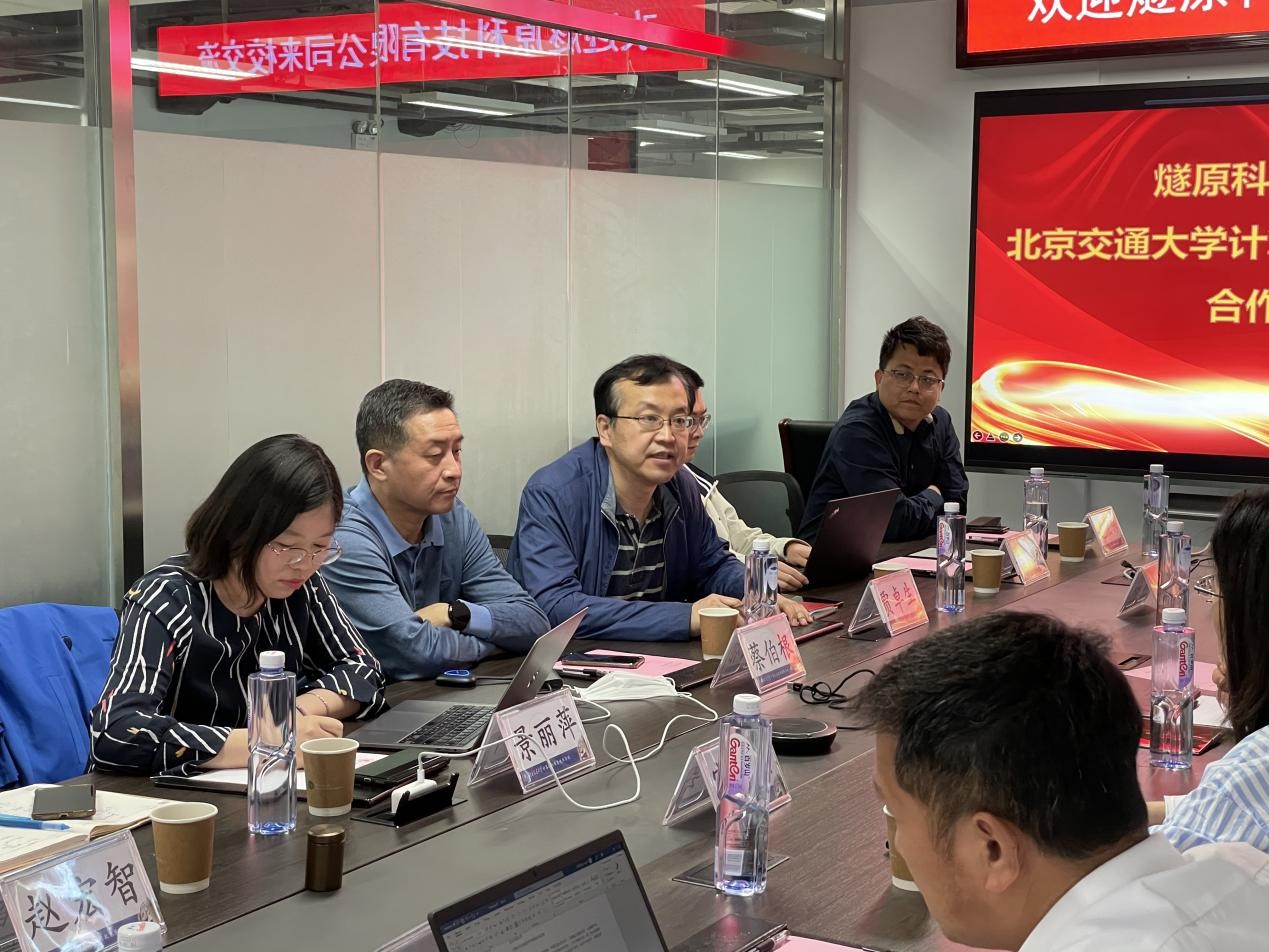 4月22日上午,上海燧原科技有限公司(以下简称“燧原科技”)副总裁陆兴、产学研总监宋嘉芸等一行四人来访计算机与信息技术学院,与九游体育院长蔡伯根、党委书记贾卓生、副院长景丽萍及学院相关教师,就产学研深化合作以及人才联合培育等方面进行了可行性探讨。