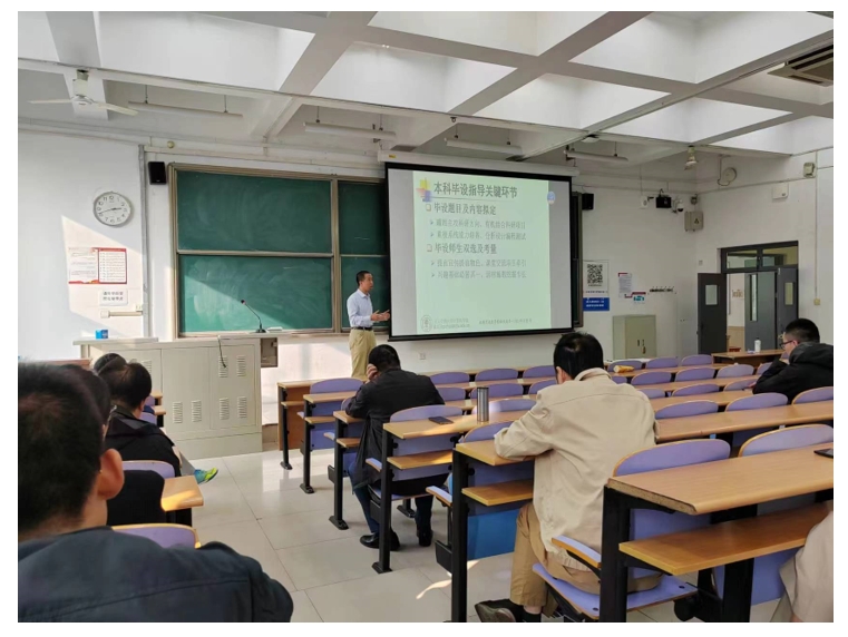最后,熊轲副院长与参会教师就本科毕设指导过程中存在的问题进行了探讨和交流,并强调了带好本科毕业设计的重要意义。通过参加这次活动,分享指导过程经验,老师们对于本科毕业设计的政策文件、具体操作和质量提升等方面有了更深入的了解,进一步提升了教师指导能力。