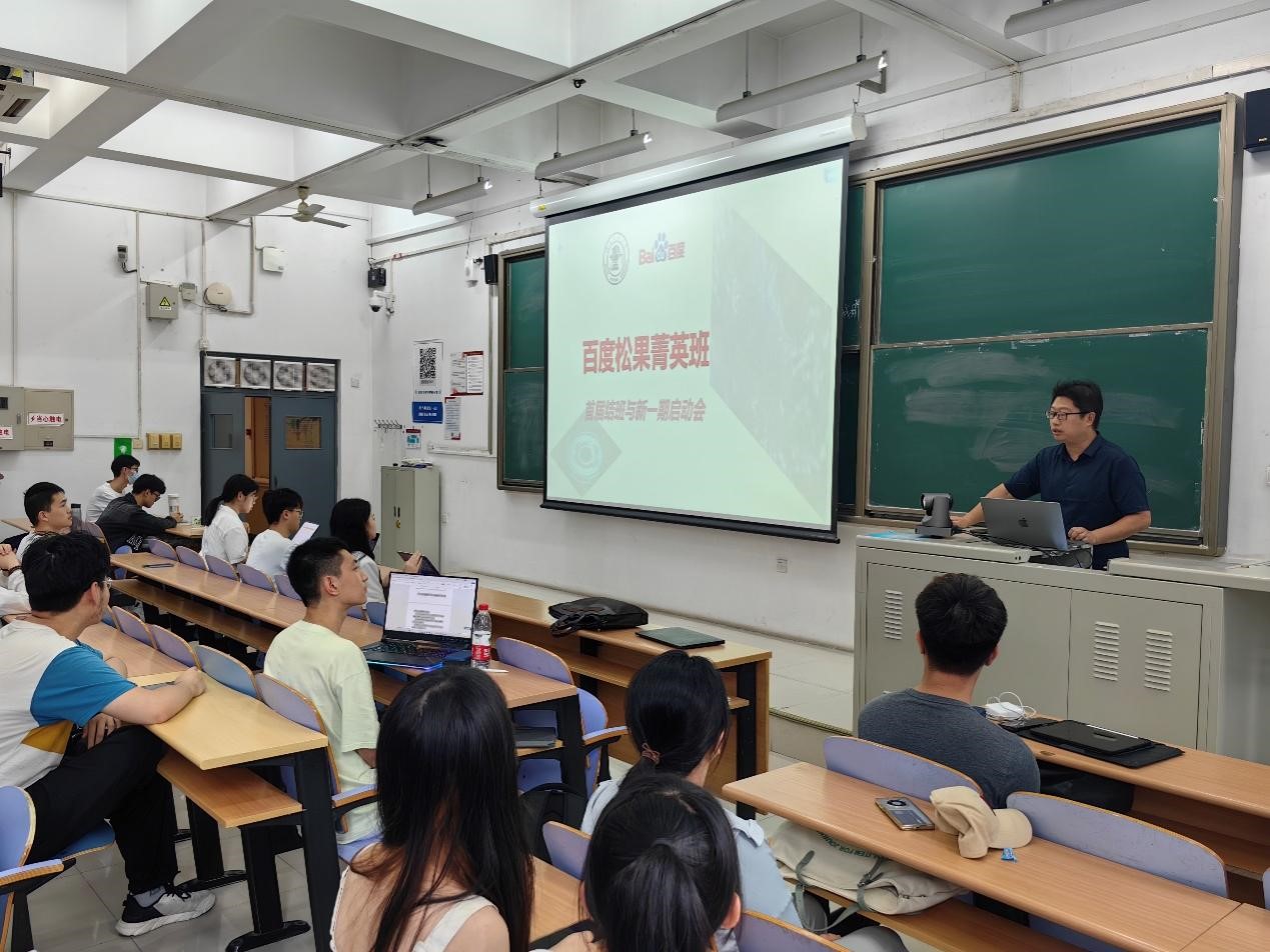 2023年7月1日下午,计算机与信息技术学院联合百度公司,在思源西楼201教室,面向第一节松果菁英班同学和2022级本科生,成功召开了2023九游体育官方网站-百度松果人才培养菁英班结课和纳新仪式。