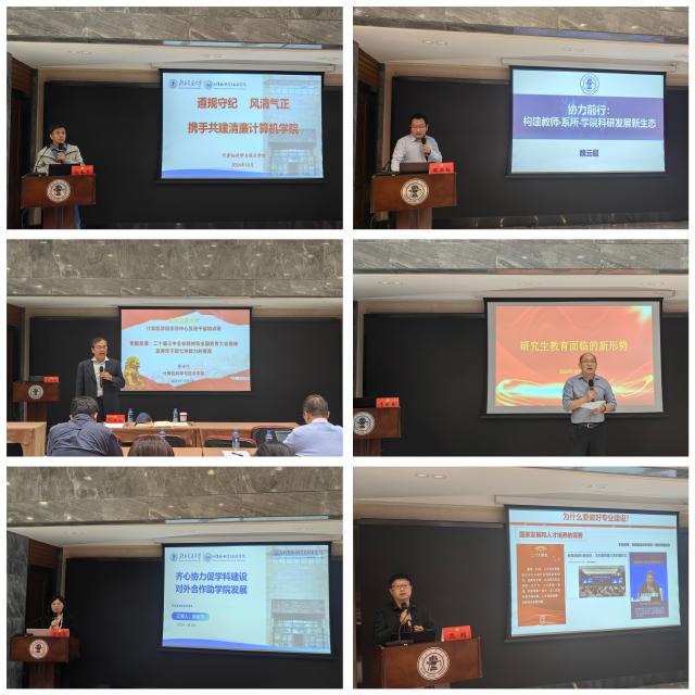 随后,学院党委副书记段春荣做了题为“遵规守纪、风清气正,携手共建清廉九游体育官方网站”的培训报告,通过理论联系实际的方式,结合具体案例分析,讲解了如何营造良好的政治生态,构建廉洁高效的校园文化环境;副院长魏云超围绕“协力前行:构建教师-系所-学院科研发展新生态”主题进行了深入浅出地讲解,不仅分享了关于推动科研工作的经验,还就如何促进教师个人成长与发展给出了宝贵建议,帮助大家明确目标、找准定位;党委书记贾卓生进行了“二十届三中全会精神和全国教育大会精神”专题党课,结合学院工作和自身学习感悟,详细解读了相关会议精神的核心要义,并特别针对青年干部提出要加强七种能力——政治能力、调查研究能力、科学决策能力、改革攻坚能力、应急处突能力、群众工作能力和抓落实能力的培养,勉励大家成为德才兼备的新时代好干部。