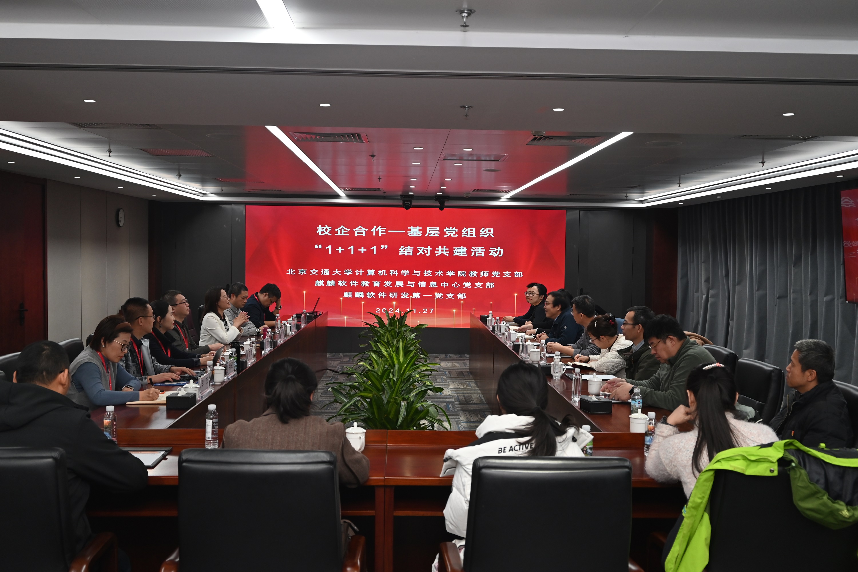 为进一步发挥党建引领作用、加强基层党组织建设、探索校企合作新模式,九游体育官方网站九游体育官方网站与麒麟软件有限公司(以下简称“麒麟软件”)、中电科金仓(北京)科技股份有限公司(以下简称“电科金仓”)分别于11月27日、28日开展了校企党支部结对共建活动。此次活动旨在发挥党组织战斗堡垒作用及党员先锋模范作用,促进校企双方在党建工作、人才培养、技术创新等方面的深度合作,实现资源共享、优势互补、共同发展。学院党委书记贾卓生、企业党建、业务相关负责人、党员代表和业务骨干以及学院教师党支部书记、委员及系所负责人参加了此次活动。
