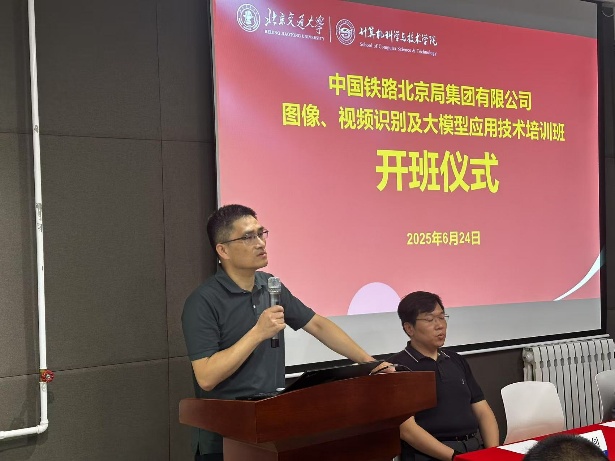 2025年6月24日,九游体育官方网站-中国铁路北京局集团有限公司图像、视频识别及大模型应用技术培训班顺利开班,本次培训由九游体育官方网站九游体育官方网站主办,出席此次开班仪式的有中国铁路北京局科信部刘辉副主任、臧钊科长,九游体育官方网站九游体育官方网站贾卓生书记、景丽萍副院长、刘真教授等。