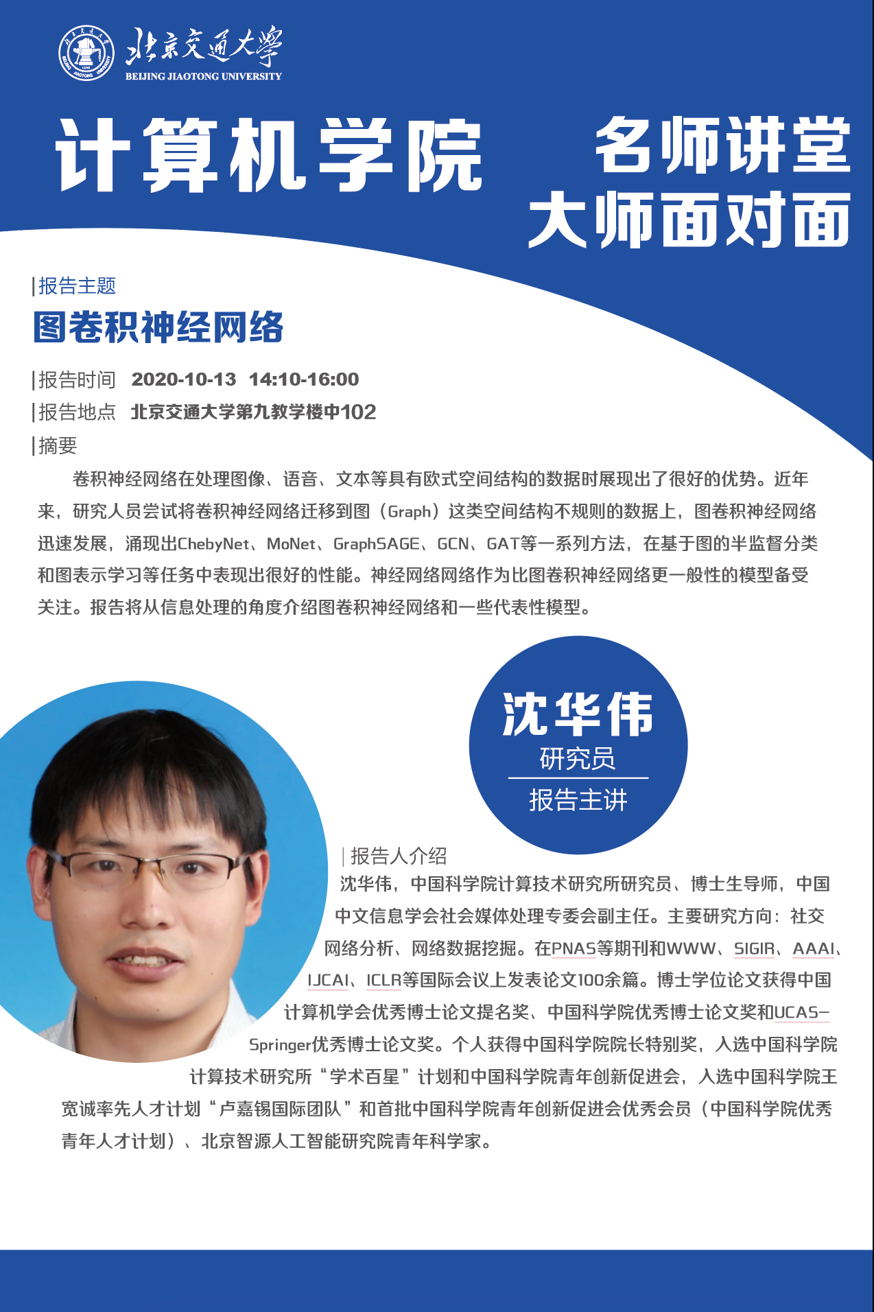 首页» 研究生教育» 通知公告» 九游体育官方网站大师面对面预告2020.10.13-图卷积神经网络 九游体育官方网站大师面对面预告2020.10.13-图卷积神经网络 发布时间:2020-10-12 阅读次数: